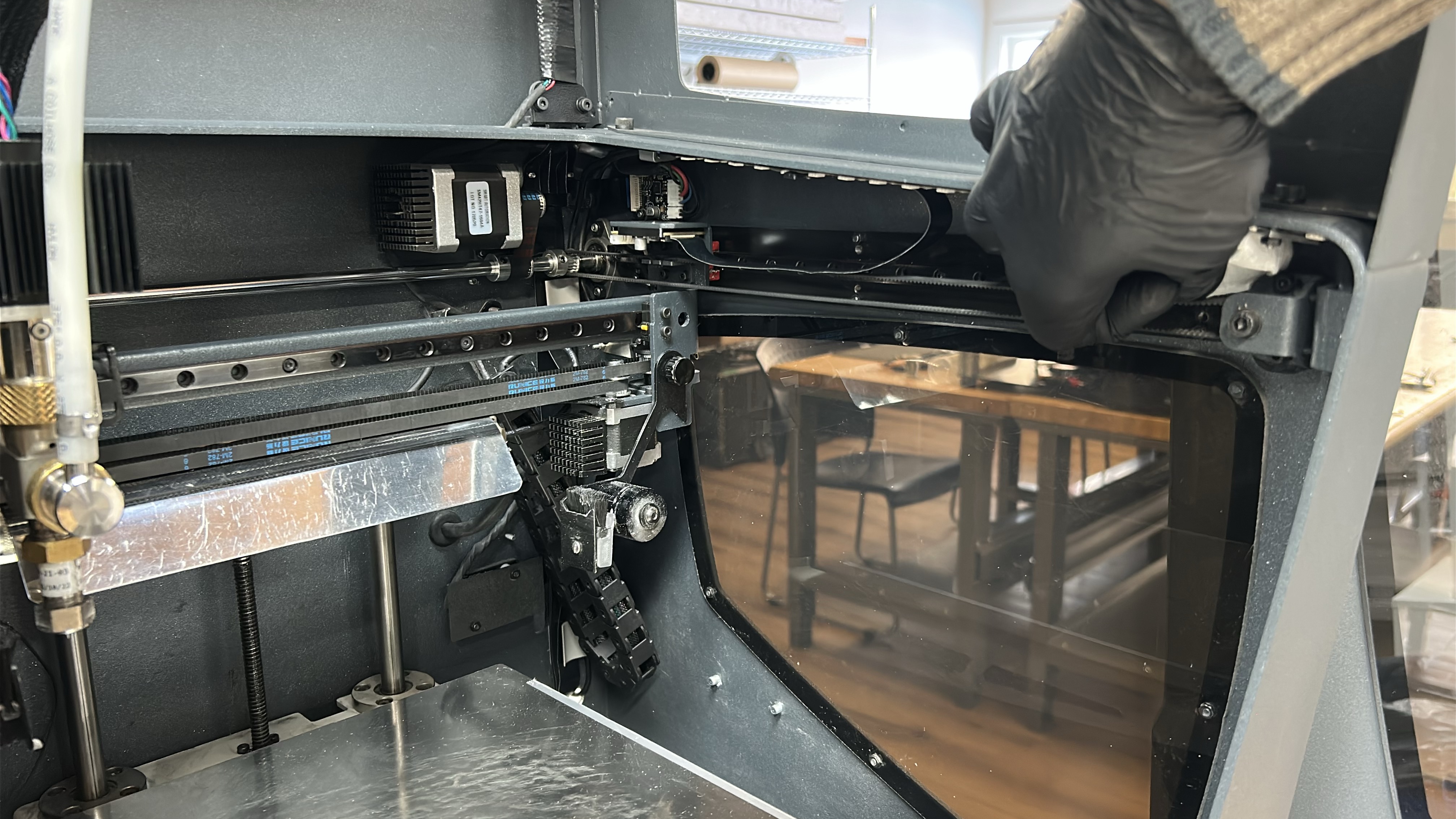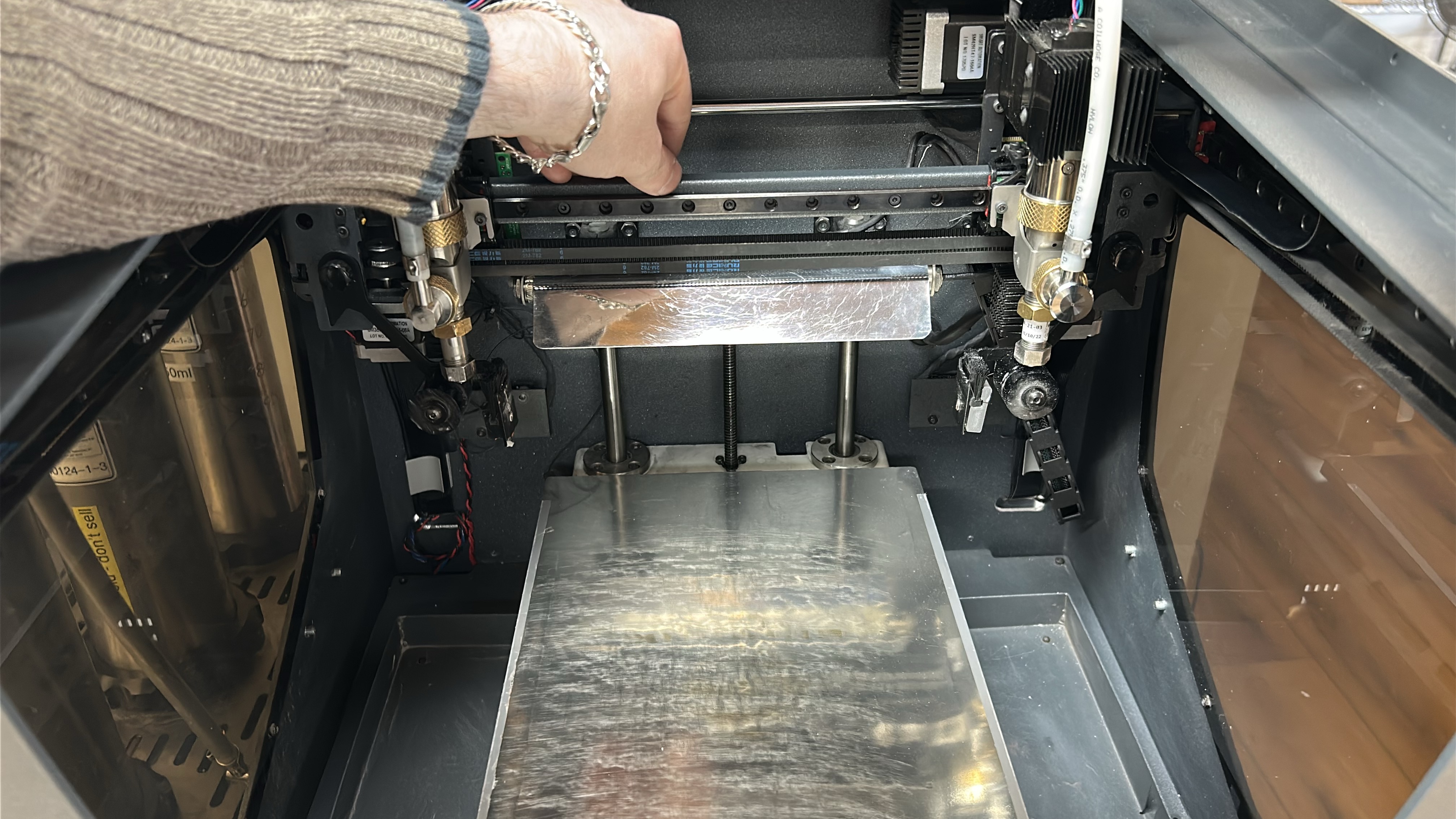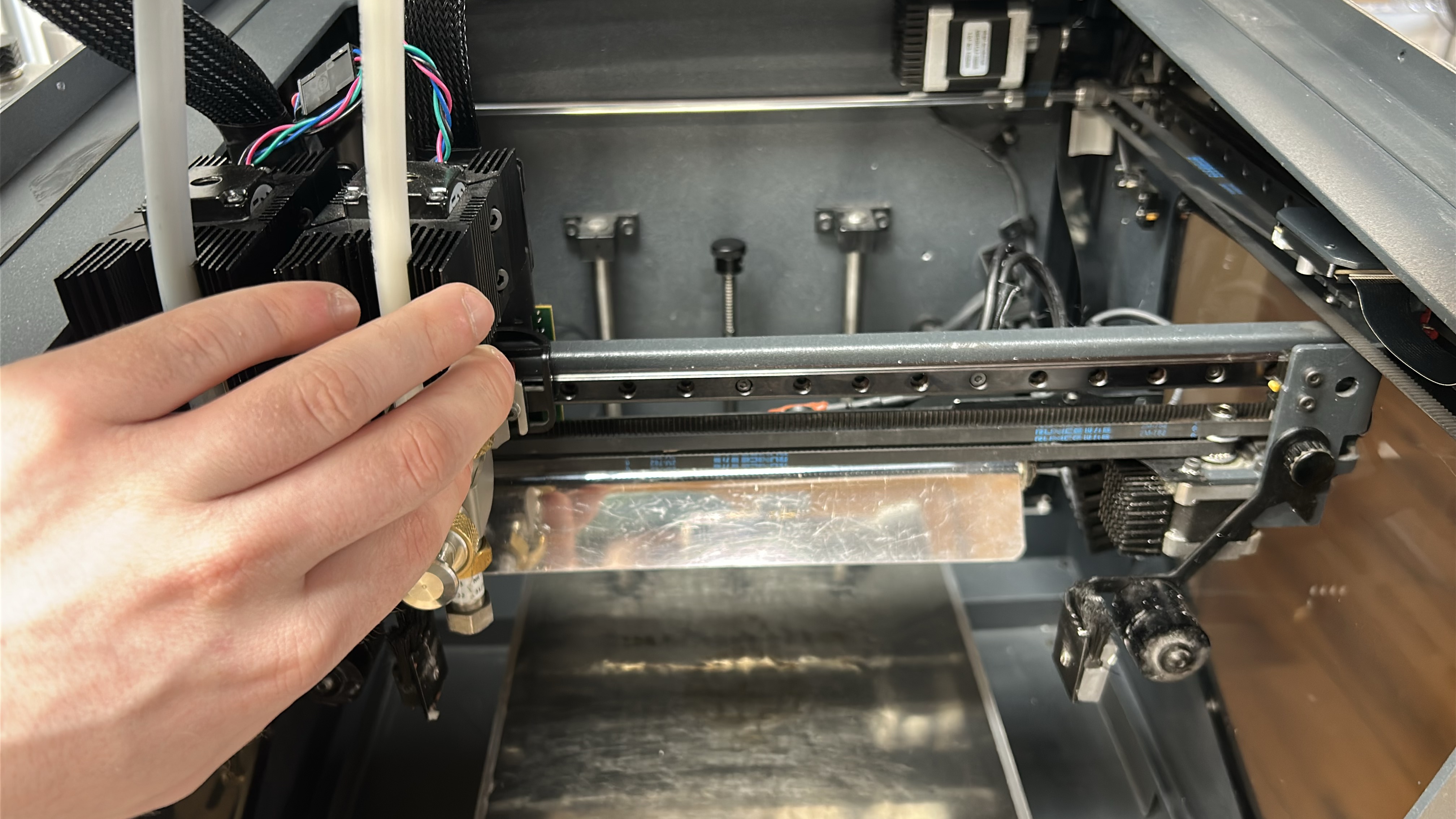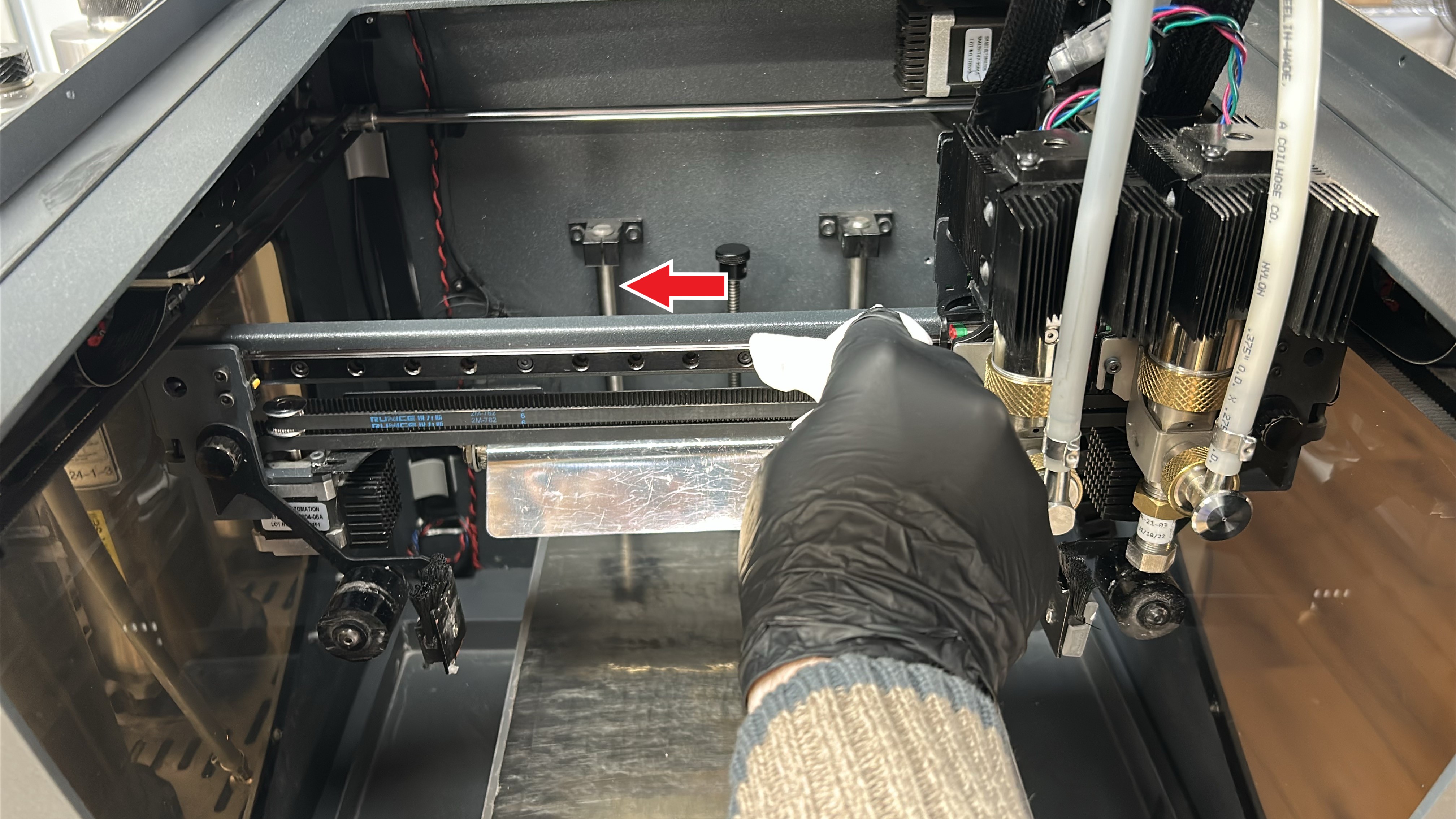 8. Move both printheads to the other side of the printing gantry and repeat steps 5 - 7 on the other Y-axis linear guide.